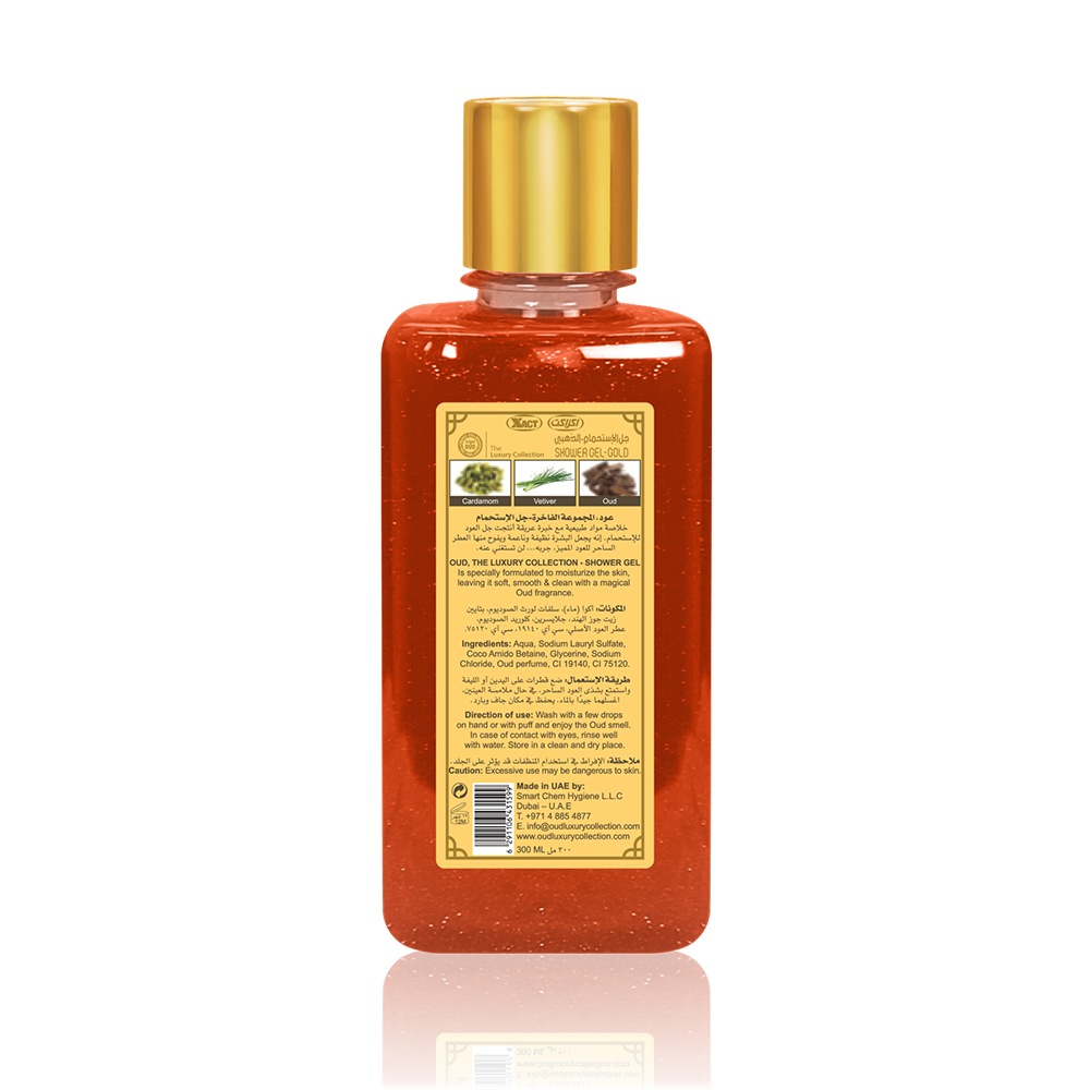 Gold Oud Shower Gel specially formulated to moisturize the skin, leaving it soft, smooth and clean with original natural Oud fragrance smell.